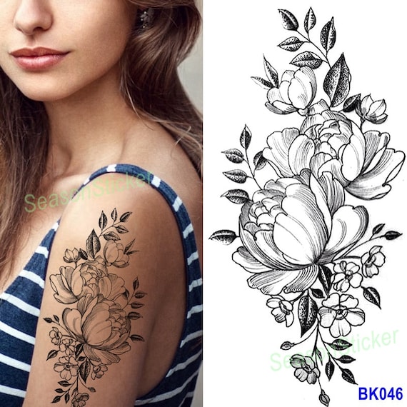Black Sketch Flower Rose Daisy Sunflower Leaf Body Waist Arm Etsy Ireland